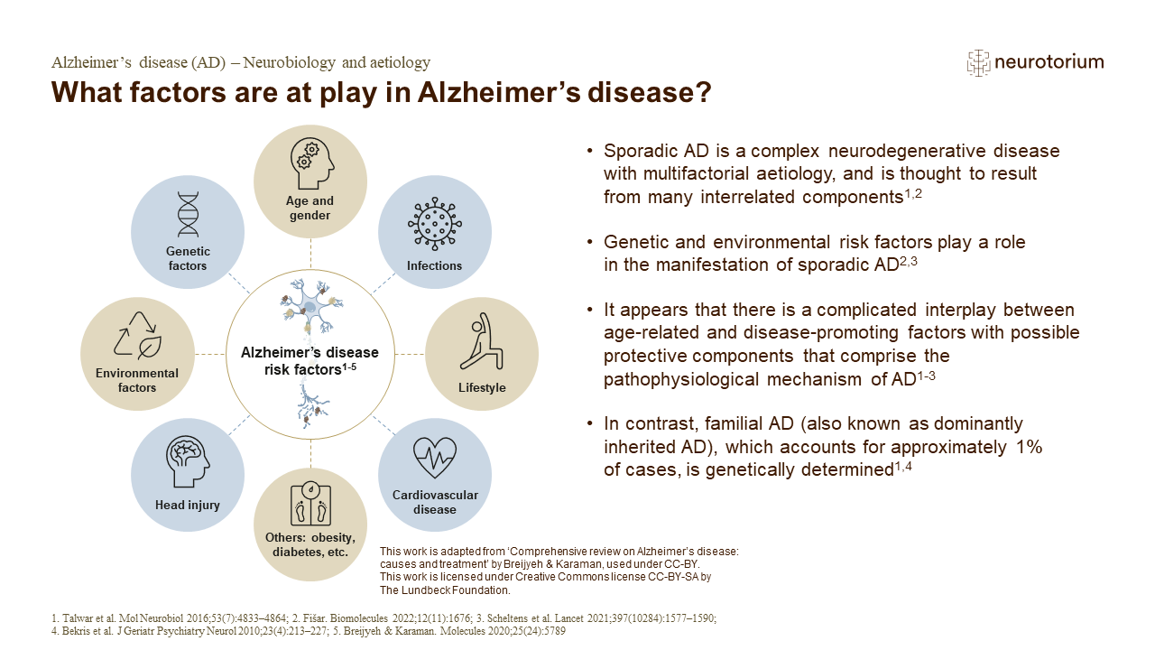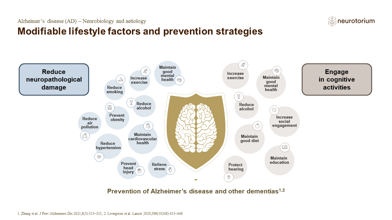 Currently, more than 55 million people are living with dementia worldwide. The World Health Organization (WHO) estimates this number to double every 20 years, reaching 78 million in 2030 and 139 million in 2050. Alzheimer’s disease (AD) represents the most common form of dementia and may contribute to 60–70% of cases.1 While autosomal dominant AD (accounts for less than 1% of all AD cases) is caused by specific genetic mutations in Amyloid Precursor Protein (APP), Presenilin-1 (PSEN1) and Presenilin-2 (PSEN2),2 experts believe that sporadic AD (the majority of AD cases) develops because of multiple factors rather than a single cause. The greatest risk factors for sporadic AD are older age, genetics — specifically the ε4 allele(s) of the apolipoprotein E (APOE) gene3 — and having a family history of AD. Importantly, although age, genetics and family history cannot be changed, there are other risk factors that can be modified to reduce the risk of cognitive decline and AD dementia.