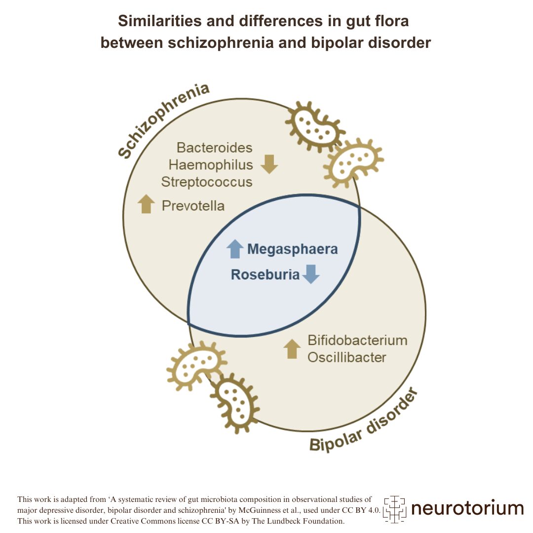 The composition of the gut microbiome is now thought to influence the pathology of mood disorders including schizophrenia and BD, via the microbiome–gut–brain axis.1-3