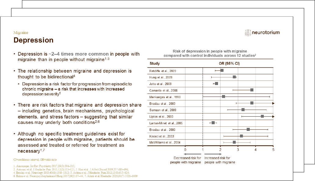Determining the relationship between migraine and a comorbid condition is complicated. This slide deck discusses in detail the presence of comorbidity in Migraine.