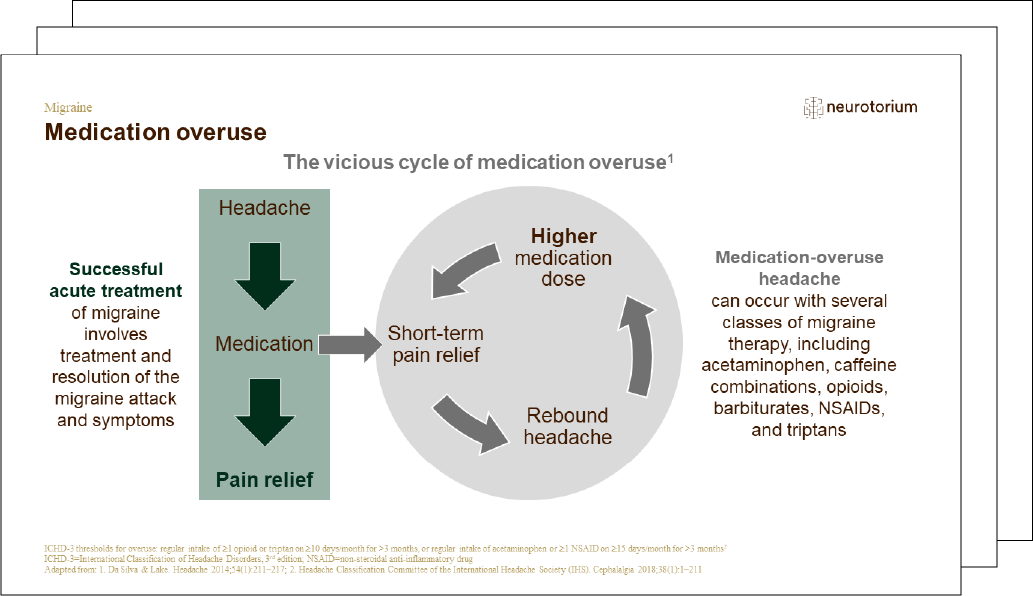 In this slide deck you will find descriptions and illustrations of migraine attacks and triggers, including the four phases of a migraine attack. The slide deck also outlines the evolution of migraine from episodic to chronic and gives an introduction to migraine prognosis. Go to the slide deck.