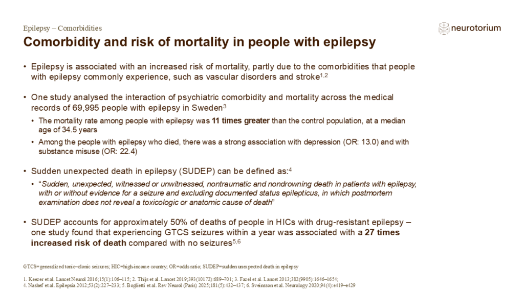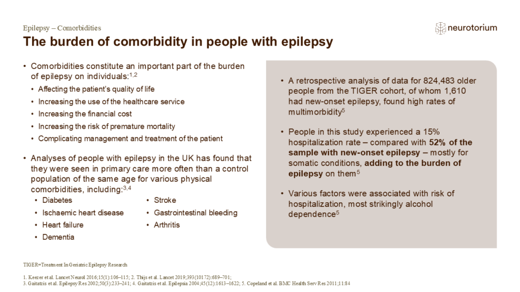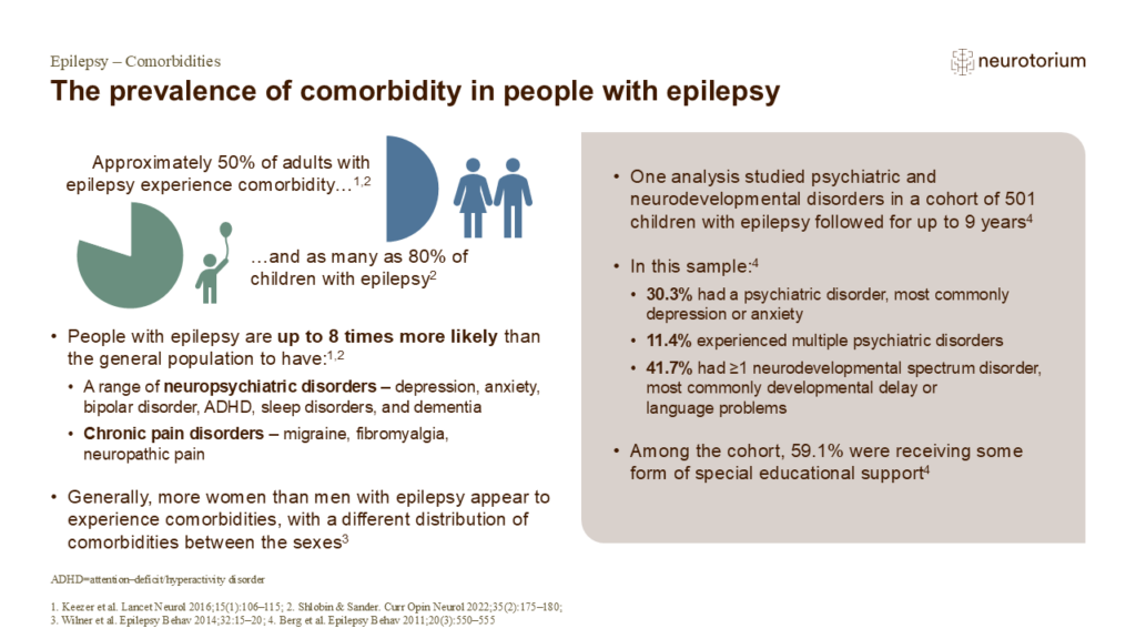 People with epilepsy often have comorbidities (i.e., conditions, signs, or symptoms co-occurring with epilepsy, which is considered the primary or ‘index’ disorder anteceding the comorbid disorders, regardless of whether there is a temporal or pathophysiological link betw…