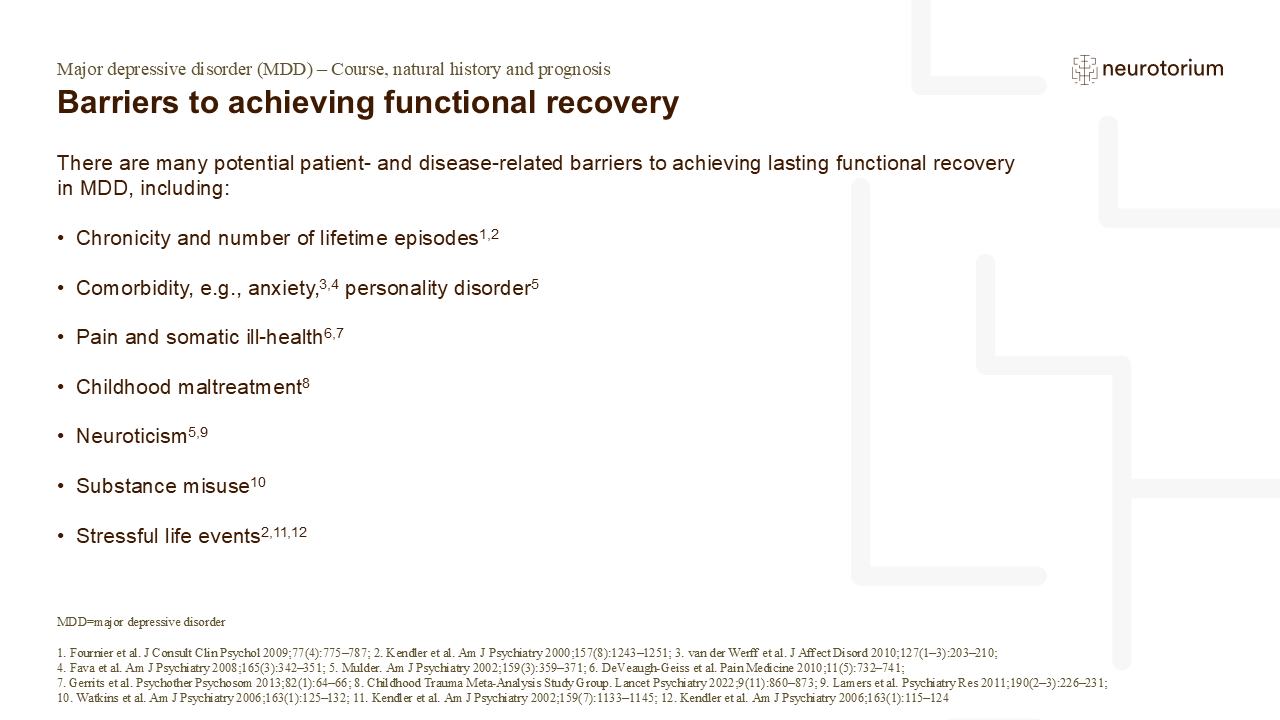 The slide lists some barriers to achieving functional recovery.