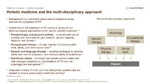 Treatment approaches for Parkinson’s disease include pharmacological, non-pharmacological and surgical methods, as highlighted on the slide and in the rest of the presentation.1-7