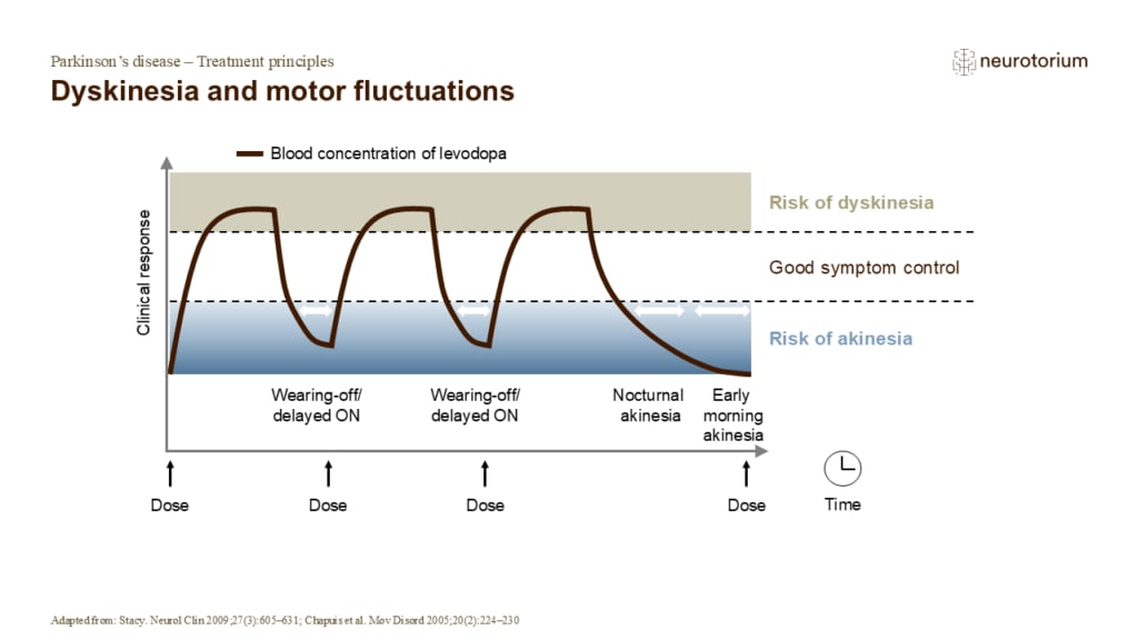 Although levodopa has been a major success story for the management of PD, it does have some limitations, such as the development of dopa-related response fluctuations (both motor and non-motor) and drug-induced dyskinesias.4